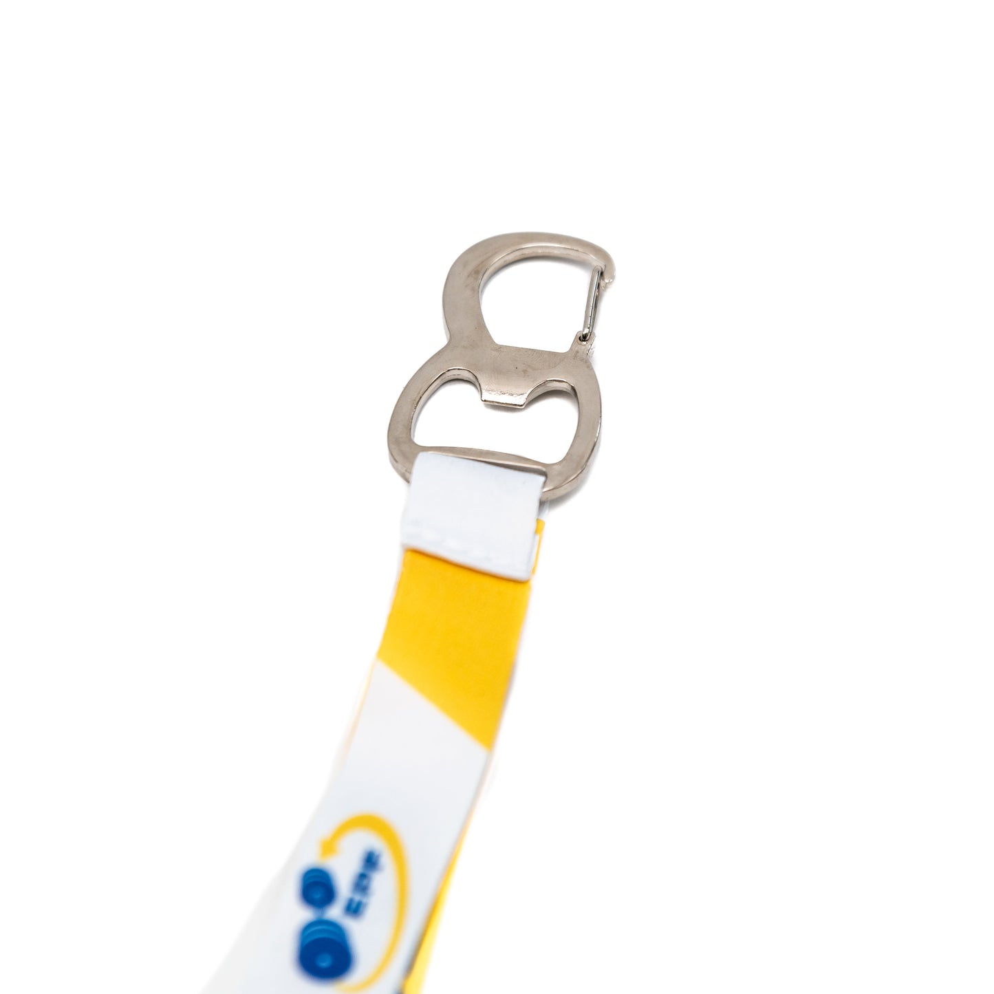 The lanyard is made from high-quality polyester and has a metal clip as well as a bottle opener.